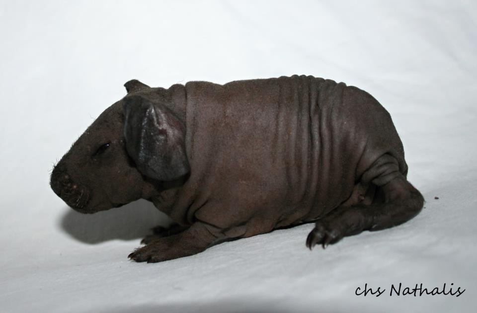 Ebony Princess Od Golema: Andrea Kroftová - 96.5b - Nejlepší bezsrsté jednobarevné + Nejlepší bezsrsté baby + NEJLEPŠÍ BEZSRSTÉ MORČE VÝSTAVY!